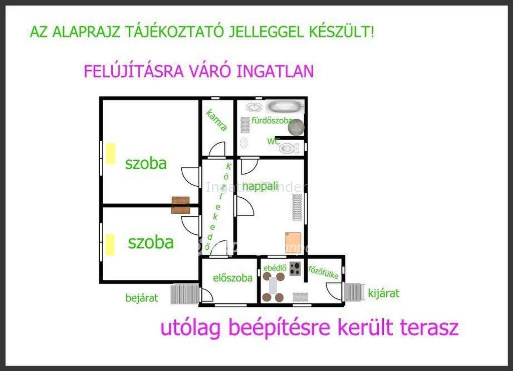 Hajdúböszörmény Középkert egyik bevezető főútján, eladóvá vált egy 70 nm-es, nappali 2 szobás , egyszintes, összkomfortos. 1970-es években épült tégla építésű, FELÚJÍTÁST IGÉNYLŐ CSALÁDI HÁZ. 675 nm-es, enyhe lejtésű telken. Az ingatlan főbb jellemzői: Jó elosztású, minden közmű megtalálható. Külön nyíló szobák, előszoba beépítésre került a terasz étkező főzőfülke, nem szerepel a térképen, közlekedő nappali, kamra fürdőszoba Wc helységei. Részben műanyag nyílászárók, konvektoros radiátor, cserépkályha fűtésű. A melegviz előállítása villany bojlerrel történik, a tetőszerkezet jó állapotú, cseréptető fedéssel. Autó beállási lehetőségek a kertben kialakítható garázs. Vállalkozási tevékenység telephelyként, tökéletes lehetőség, itt az alkalom! Az ingatlan per, teher és igénymentes. Amennyiben felkeltette érdeklődését, megtetszett az ingatlan, hívjon bizalommal, akár a hétvégén is! Egyeztessünk időpontot megtekintésre. Az OTP Magyarország legnagyobb múltú Bankja teljeskörűen segíti az eladóinkat és vevőinket. Kulcs átadásig végig vezeti a folyamatot. Referencia számunkra hivatkozzon: M324612 szám Referencia szám: M324612 | |||