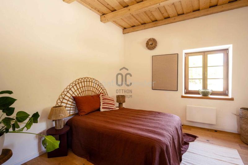 Varázslatos nádfedeles ház a Balatontól 10 km-re – Egyedi vidéki harmónia Füle csendes, bájos településén, mindössze 10 kilométerre a Balaton partjától eladó ez a különleges, 2025-ben teljesen megújult nádfedeles otthon. Egy magyar–francia építész-designer tervei alapján született újjá, a hagyományos építőanyagok és formák kortárs eleganciával ötvözve. Az épület részben vályog- és tégla szerkezetekből áll, így egyszerre őrzi a vidéki házak természetes báját és biztosít korszerű tartósságot. A vályog technikának köszönhetően a belső terek egész évben kellemes klímát nyújtanak: nyáron hűsítenek, télen pedig természetes módon tartják a meleget. A 386 m²-es intim telek természetközeli hangulatot áraszt. Saját parkolóhely és egy esővizet gyűjtő kerti kút is tartozik hozzá – apró figyelmességek, amelyek egyszerre szolgálják a kényelmet és a fenntarthatóságot. Így a nyugodt vidéki miliőben élvezheti a természet körforgását, miközben a Balaton pezsgése csupán egy karnyújtásnyira van. Főbb jellemzők: Nettó lakóterület: 110 m² (földszint: 70 m², tetőtér: 40 m²) 2 hálószoba és 2 fürdőszoba Modern elektromos fűtés – egész éves komfort Különleges építészeti részletek: látszó tetőszerkezet, épített nappali kanapé, egyedi formájú konyhapult, beépített polcok Nádfedeles tető és homlokzat – autentikus, mégis kortárs megjelenés Saját kerti parkoló és kút Ez a ház nem csupán egy ingatlan, hanem egy ritka lehetőség: egyszerre kínál vidéki nyugalmat, kortárs kényelmet és a Balaton közelségének minden előnyét. Közművek: víz,villany,csatorna | |||
