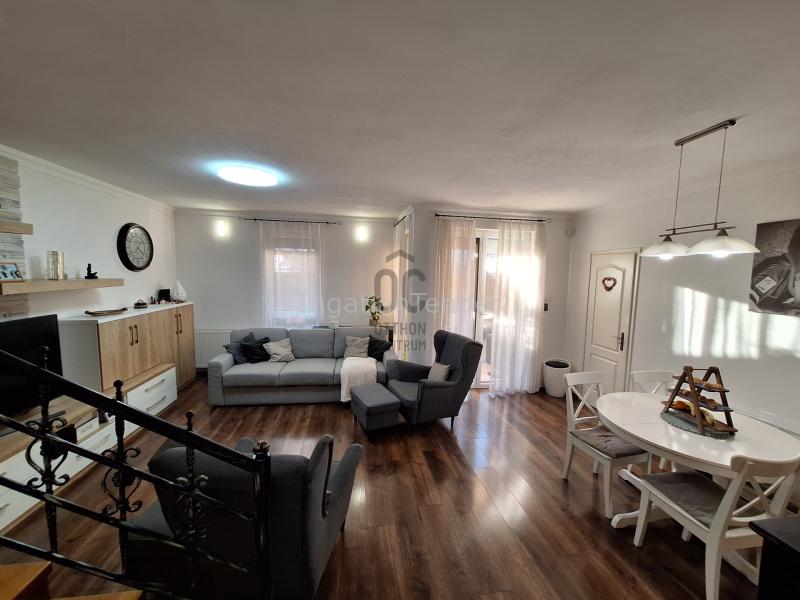 Debrecen, Geréby telepen eladó egy 2006-os építésű, kiváló állapotú, 92/108 m²-es, kétszintes sorházi lakás plusz 22 m²-es tetőtéri szobával, illetve 100 nm-es saját udvarral. Földszint: amerikai konyhás nappali, étkező, spájz, zuhanyzós fürdő wc-vel, 18 m²-es elektromos kapus garázs. Emelet: 3 szoba, kádas fürdőszoba, wc-vel. Tetőtér: külön beépített 22 m²-es szoba – dolgozószobának, gyerekszobának vagy hobbitérnek ideális. Felszereltség: gázcirkó fűtés, klíma, napelem, riasztó, gondozott kert. Alacsony rezsijű, modern, jól karbantartott és felújított otthon. Az ingatlanról teljes körű videó felvétel készült, a megtekintése érdekében weboldalunkon keresse a H514752 regisztrációs számon vagy keressen telefonon közvetlenül. Közművek: víz,villany,gáz,csatorna | |||