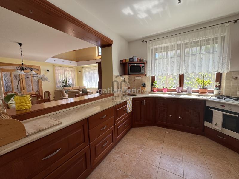 Különleges és kifinomult otthon Csolnokon – ahol a kényelem találkozik a fenntarthatósággal! Az ingatlanról: Eladó Csolnok központjában egy minden igényt kielégítő, belső liftes családi ház, amely a modern technológia, a magas minőség és a gondosan megválasztott anyagok tökéletes egységét kínálja. Ez az otthon a legapróbb részletekre is kiterjedő figyelemmel épült, ami már a szerkezeténél is látszik: a 44-es porotherm H téglafalak és az 5 cm-es dryvit szigetelés a kiváló hőszigetelés alapját adják, amit a tető 15 cm-es ásványgyapot, a födém pedig 30 cm-es szigetelése tesz teljessé. Ennek köszönhetően a ház B energetikai minősítést kapott, így a fenntartása rendkívül gazdaságos. Energiatakarékosság: A 96 Amperes kiépített hálózat és a 20 darabos napelem rendszer (455W/panel) nem csak a jövőre szól, hanem jelentősen csökkenti a rezsiköltségeket. Az elektromos fali-autótöltő pedig a környezettudatos életmódot segíti. Kényelem és komfort: A házban található lift megkönnyíti a közlekedést a szintek között, a beépíthető galéria pedig további életteret adhat. A fűtésről kondenzációs gázkazán és a hidegebb napokon cserépkályha gondoskodik, az alsó szinten padlófűtéssel, ami igazi otthonos érzetet ad. Nyáron a 2 légkondicionáló biztosítja a kellemes hőmérsékletet. A beépített infraszauna pedig a kikapcsolódásról gondoskodik. Minden helyiségben szúnyogháló és alumínium redőny található, a nagy ablakoknál ráadásul motoros redőny került beépítésre. A riasztórendszer szintenként vezérelhető, a biztonságot pedig az elektromos autókapu és garázsajtó garantálja. A házban 14 darab, kézzel készített fenyőfa ajtó gondoskodik a meleg, természetes hangulatról. A gondozásmentes kerítés és a rézzel burkolt szél-oromdeszkák. A fűtés távvezérelhető Bluetooth-on keresztül, így otthonról távol is könnyedén szabályozhatod a hőmérsékletet. Elhelyezkedés: Az ingatlan Csolnok nyugodt, csendes községében, a központhoz közel, mégis kellemes, zöld környezetben található. A gyalogosan is megközelíthető közelségben van a bölcsőde, óvoda, iskola, orvosi rendelő, gyógyszertár, boltok, és számos szabadidős létesítmény (uszoda, sportcsarnok). A település kiváló közlekedési adottságokkal rendelkezik: Dorog 5 km-re, Esztergom 13 km-re, míg Budapest mindössze 39 km-re található. A Budapest-Esztergom vasútvonal autóval 10, tömegközlekedéssel 15 perc alatt elérhető. Közművek: víz,villany,gáz,csatorna | |||