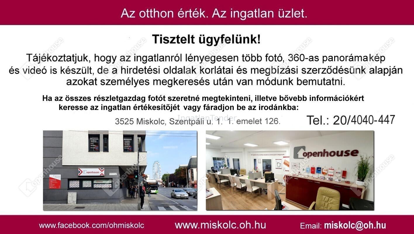 Az Openhouse Miskolc Szentpáli utcai Ingatlaniroda kínálatában eladó a #174474 hivatkozási számú miskolci családi ház. A Tapolcai családi ház jellemzői: - a ház csendes helyen, a főúthoz mégis közel található, panorámás kilátással - 2000-ben épült téglából, jó állapotú ház, nagy terekkel, 7 szobával - 10cm hőszigetelést kapott - a földszinten nagy nappalival, nagy terasszal, konyhával és szép nagy fürdővel - a tetőtér beépített, 4 szoba, nagy panorámás erkéllyel, igényes fürdővel - két állásos nagy garázs, tátrolóhelyek, kamra a pince szinten - a fűtés rőnkfa befogadására alkalmas kazánnal megoldva. - A melegvizet három nagy méretű villanybojlerrel látják el - hatalmas szobák, tárolásra alkalmas helyiségek jellemzik - a nagy nappaliban kandalló, amely külön meleget biztosít - két szinten is van fürdő és W.C. - jó állapotú hőszigetelt nyílászárók mindenhol - a telek 808m2, gyönyörű panorámával a városra és a környező településekre - az egyetemhez közel, földúton közelíthető meg - buszmegálló kis gyaloglással elérhető Ha felkeltette érdeklődését ez az eladó miskolci családi ház, vagy bármely más családi ház és bővebb információt szeretne, keressen bizalommal.Hivatkozási szám: #174474 Az Openhouse Miskolc Szentpáli utcai Ingatlaniroda tagjaként várom Önt az országos hálózatunk teljes kínálatával. A családi ház vásárláshoz hitelt igényelne? Ingyenes hitelközvetítéssel segít Önnek bankfüggetlen hitelszakértőnk. További szolgáltatásainkkal (pl. értékbecslés, energetikai tanúsítvány, jogi háttér) is segítjük Önt a vásárlásban. Az otthon érték. Az ingatlan üzlet. Irányár: 109000000 Ft Érd.: Joó Tímea +, Email: , www.oh.hu Referencia szám: 174474 | |||