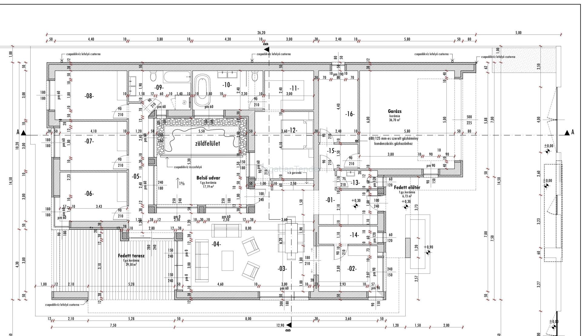 Újkistelekiszőlő kedvelt, jól megközelíthető helyén eladó ez a páratlan, nem hétköznapi, építés alatt álló önálló családi ház. Az összes közmű a telken belül van. - tégla építésű, 38-as Porotherm, 15 cm szigetelés - lapos tető, E- gerendás födém, 30 cm hőszigetelés - 3 rétegű műanyag nyílászárók - nappali és 4 háló, szülői hálóhoz külön fürdőszoba és gardrób - 2 fürdőszoba, külön vendég WC - leválasztható konyha kamrával - étkező - villanytűzhely - hőszivattyús padlófűtés, mennyezet hűtés - légtechnikai rendszer gépészetileg előkészítve - központi porszívó gépészetileg előkészítve - 3 X 16 A - lakórész: 180m2 - 30 m2-s fedett terasz - 36 m2-s garázs Hörmann elektromos garázskapuval, lakótér kapcsolattal - 1000m2 udvar - belső, zárt kertrész - riasztórendszer alapvezetékelés kb. 70%-os készültség! 3%-os hitellel is befejezhető! Egyedi megoldás a belső udvar, valamint a minden igényt kielégítő kiszolgáló helyiségek. Bővebb műszaki tartalomért és bankfüggetlen teljes körű ügyintézéssel várom hívását! | |||||||||||||||||||||||||||||||||||||||||||||||||||||||||||||||