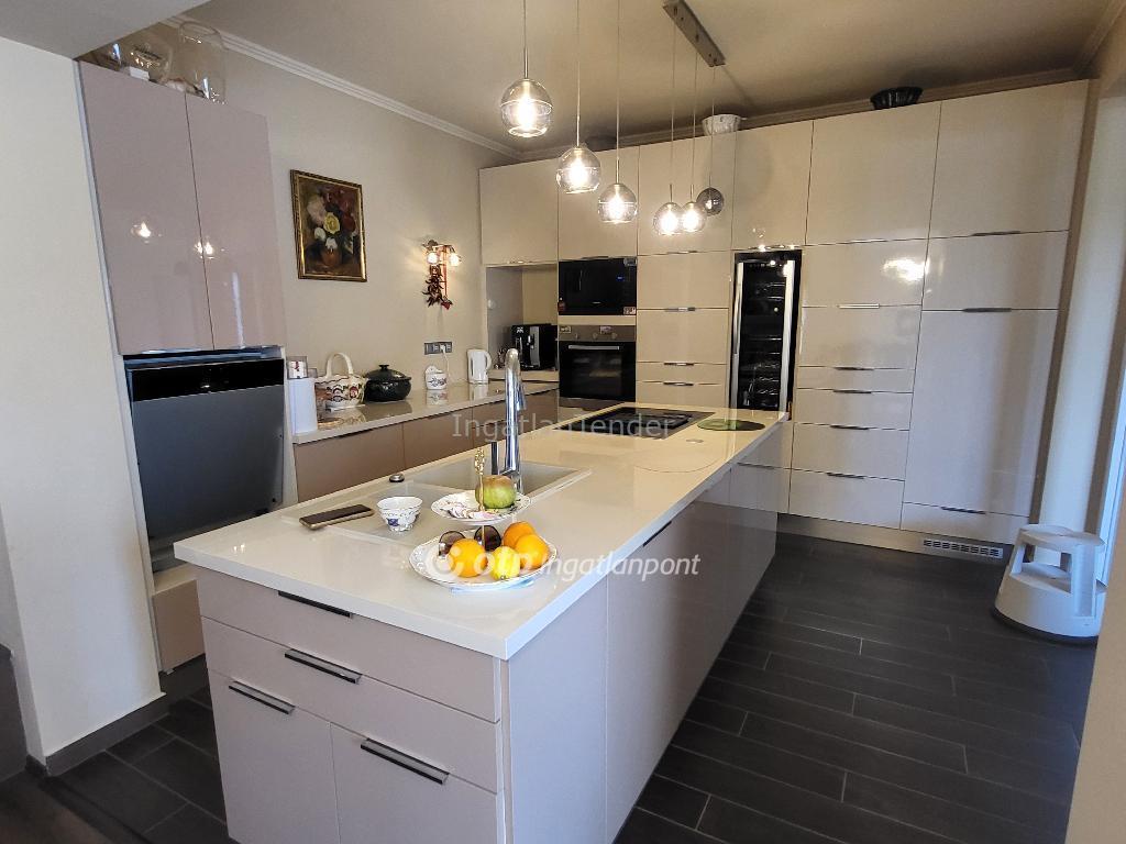 Balatonszárszón, Somogy vármegyébe, családi ház eladó! Elegáns, rendkívül igényes 210 m2-es álomotthon várja új tulajdonosát. A tágas belsőtereken, a csodálatos, ultramodern konyhán kívül, 3 terasz, és egy 45 m2-es szigetelt garázs, valamint egy szépséges, hangulatos 669 m2-es kert biztosítja a tökéletes pihenést, megnyugvást a hétköznapok rohanásában. A 2021.-ben, kifogástalan ízléssel megálmodott, és megvalósított otthon 950 m távolságra van a Balatontól, amely egyenes, egyszerű lejutással közelíthető meg. Az utca nagyon nyugodt, és gondozott házakkal beépült. A lokáció kiváló! 400 m-en belül található üzlet, éttermek, patika, orvosi rendelő, buszmegálló, iskola, óvoda. Ebből adódóan, tökéletes otthona lehet ez a ház egy családnak, úgy, hogy a felső szint, amely szeparáltan is megközelíthető, és különálló fűtése van, akár ki is adható. Minden formában hasznosítható, ez a remek ingatlan. Lehet otthon, nyaraló, befektetés, de mindez kombinálható is. A ház 38 cm-es téglából épült, amelyet 20 cm-es szigetelés borít. A tetőt Bramac tetőcserép fedi. A műanyag ablakok mindegyikén van redőny. A fűtést egy gyönyörű cserépkályha, hűtő-fűtő klíma, és gázkazán radiátorokkal biztosítja. A burkolatok kiváló minőségűek, és szemet gyönyörködtetőek. A kertben kényelmes bútorok és szépséges növények teremtik meg a mediterrán életérzést. Ha szeretne egy ilyen környezetben élni, mindenképp nézze meg ezt az ingatlant, hogy beleszeressen! További egyeztetésért, hívjon bizalommal! M312500 178000000 Ft Referencia szám: M312500 | |||