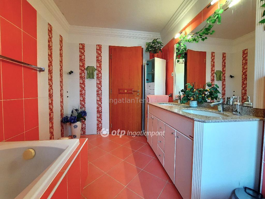 Balaton déli parton, Siófokon 270 m2-es családi ház eladó. Az ingatlan kertvárosi részen, csendes utcában helyezkedik el. A kétszintes épület 2 lakóegységet tartalmaz. A 2006-ban téglából épült lakóház a kor igényeinek megfelelő magas színvonalon, kőzetgyapot homlokzati hőszigeteléssel, természetes pala tetőhéjazattal, egyedi belsőépítészeti megoldásokkal került kivitelezésre. A földszinten külön bejáratú garzonlakás épült, ez akár iroda vagy otthoni vállalkozás céljára is alkalmas lehet. A nagyobb lakrész - földszint + teljes értékű emelet - több generáció együttélésére is alkalmas lehet. A földszinten lakóterek, és hálószoba, emeleten 4 háló és 2 fürdőszoba került kialakításra. Tervek szerint a lakótérből egy télikerten át wellness tér kerül kialakításra, medencetér, szauna, tetőtéri pihenőszoba, tetőterasz, ezek jelenleg szerkezetkész állapotban vannak. Az épület fűtése és melegvíz ellátása gáz kondenzációs kazánnal kivitelezett. A hőleadás módja padlófűtés és falfűtés, használati melegvíz tároló 300 literes. A gépészeti rendszernél medence vízgépészet csövezése elkészült. Épületen belül kétállásos, fűtött garázs áll rendelkezésre. A telek területe 991 m2, a parkosított kertben automata öntözőrendszer fúrt kútról működik. Balaton-part és városközpont gyalog 800 méter távolságban van. Bővebb információért keressen telefonon! Referencia szám: M307406 | |||