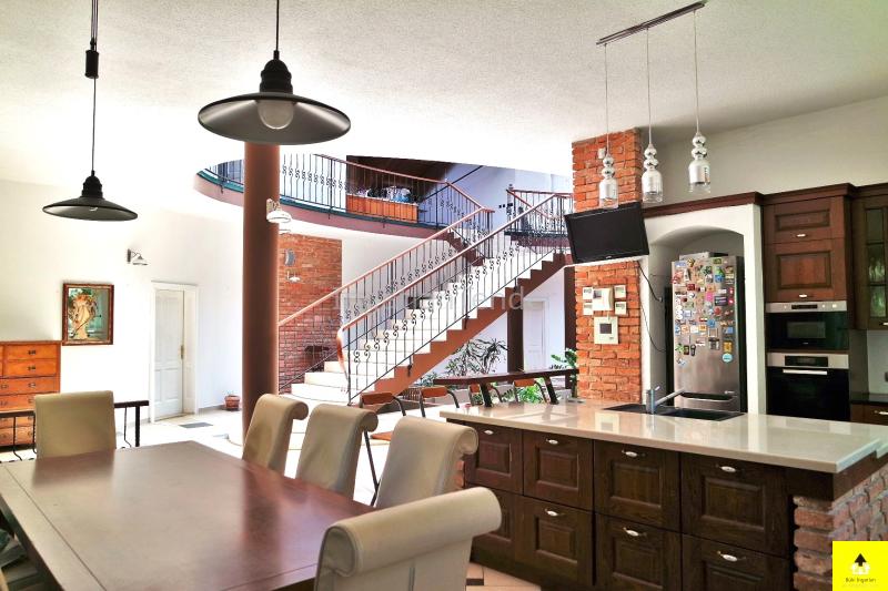 Nagyvonalú, reprezentatív otthon az osztrák határ közelében. Gondozott park által körülvéve, szomszédmentes övezetben áll ez a különleges családi otthon, ahol minden adott, hogy akár nagyobb társasággal is jól érezze magát. Egyedi adottságai és magas komfortszintje miatt kiváló otthona lehet. A kertben méretes, fedett medence, igényesen kialakított nyári konyha, fedett étkező rész, számos tároló, dupla garázs biztosítja, hogy rendezett környezetben pihenhessen. Az épület osztrák alpesi stílusban épült az 1900-as évek elején. Akkoriban a cukorgyár tiszti szállásaként használták. Az épületről A ház 340 m2-es földszintje egy hatalmas egybenyitott tér, melyben található egy nappali, egy étkező, egy konyha, melyből eljuthatunk a kinti medencéhez vezető szauna teremhez. Valamint ezen a szinten található még 2 hálószoba és egy tágas fürdőszoba. A földszint díszeként szolgáló impozáns lépcsőn felmenve a szintén 340 m2-es emeletre érkezünk, ahol közösségi térek fogadnak. Innen nyílnak a további helyiségek. Négy hálószoba, egy fürdőszoba, valamint egy tágas fedett terasz. A lakószobák mérete 30 és 35 m2 közöttiek és mindegyik klimatizált. A közösségi terek szintén klimatizáltak és a felülvilágító ablakok teszik világossá. Modernizálás Az ingatlan 1914-ben épült és 2003-ban teljeskörű felújításon esett át. Modernizálása a mai kor igényeinek megfelelően, de az eredeti stílushoz igazodva és hangulatának megőrzésére törekedve történt. A jelenlegi állapot kialakítására, amikor is a korábban egy szintes épület új födémmel, tetőtér beépítéssel két szintes lett. Az emelet a korábbi tetőtérben új födém kialakításával nyerte el mai állapotát. Ekkor került beépítésre az épület meghatározó építészeti eleme, a középen elhelyezett kovácsoltvas elemekkel díszített lépcső, valamint a megnyitott tetőszerkezet eredeti fém támasztó elemei. Mindemellett az épület gépészete és a szigetelése is a 21. századnak megfelelően újult meg. A világítás, az árnyékolók és a 2021 felújított fűtésrendszer kezelését okos otthon rendszer segíti. Az épület kamerarendszerrel, riasztóval és programozható kapcsolókkal (okosház - továbbfejleszthető BUS rendszer) felszerelt. A környezetről A birtokra igényes kovácsolt kapukon juthatunk be, melyhez privát úton lehet behajtani. A telek két külön bejárattal rendelkezik, az egyikben automata kapu működik. A 3790 m2-es terület körbekerített, parkosított és ősfák teszik árnyékossá. A 2000 m2-es zöld terület gondozásához 11 körös automata öntözőrendszer került kiépítésre, mely a vizet a helyi kútból veszi. Nagy érték a gondosan ápolt park, mely teljes védettséget nyújt, az amúgy is eldugott helyen lévő kúriának. A telken található egy 110 m2-es melléképület, egy 35 m2-es dupla garázs, egy 36 m2-es kerti épület és egy kültéri medence. A főépület egyik sarka alatt 25 m2-es borospince található, mely kiválóan alkalmas bor tárolásra, de egy kis elvonulós borozgatásra is ideális. Ezen a részen kapott helyet egy szauna, szolárium és zuhanyzó helyiség is, valamint innen irányítható a kültéri medence gépészete. Alapterület: • 340 m2 x 2 (földszint + emelet) Szobák száma: • Fsz: 2 • Emelet: 4 Fürdőszobák, WC-k: • Fsz: fürdőszoba, WC-vel, bidével gőzkabinnal + különálló WC • Emelet: fürdőszoba, WC-vel, bidével • Kert: WC Fűtése: • Gázzal + Inverteres klíma (hőcserélős) • Vaillant EcoTec kazán (idei) + medence kör. • Padlófűtés külön körön alul-felül + radiátorok Medence: • 8.48 X 4.5 méter • 58 köbméter • WaterAir rendszerrel Okosház, biztonságtechnika: • riasztó • programozható kapcsolók (okosház - továbbfejleszthető BUS rendszer) • kamera rendszer • 11 körös öntözőrendszer fúrt kúttal Garázs: • 36 m2 (2 autó) Fedett terasz: • 56 m2 • infra fűtés • bárpult • kültéri konyha kialakítás Melléképület: • 110 m2, 4 különválasztott, külön bejárattal rendelkező helyiségből áll Extrák: garázs,tároló,terasz,kerthasználat,amerikai konyha,beépített tetőtér,csendes környék,étkező,jó közlekedés,két bejárat,kettőnél több WC,klíma,melléképület,nappali,pince,riasztó,szauna,zöldterület Közművek: villany,gáz,csatorna | |||