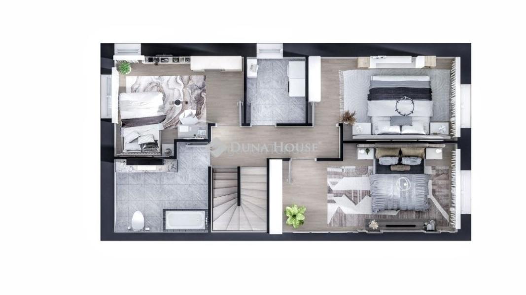 Eladó Vecsés Felsőhalmon egy netto 147 nm alapterületű, nappali+ három halószobás, belső kétszintes, 424nm-es saját kerttel, garázzsal, hőszivattyús fűtéssel rendelkező, újépítésű ikerház egyik fele. Épület:Várhatóan 2025-ben IV. negyedévben fog elkészülni, I. osztályú anyagokkal. Ingatlan:A ház egy nyugodt, csendes zsákutcában található, ezáltal csak célforgalom van rajta Belépés után az előszobában találjuk magunkat rögtön balra a gépházat található, mellette a lépcsőfeljáró. A lépcsővel szemben az egyik fürdőszoba található. Az előszobában továbbhaladva jobbra az amerikai konyhás nappali helyezkedik el, ahonnan kijuthatunk a teraszra és a lakáshoz tartozó saját kertbe. Balra meg a nappali. A felső szintre jutva jobbra még egy fürdőszoba, szemben egy szoba található. A lépcsőfeljáróval szemben a háztartási helyiség áll rendelkezésre. Balra két hálószoba található. Finanszírozás:Az ingatlan teljesen tehermentes, a fizetési ütemezése előre egyeztetve fizetendő. Irodánkon keresztül bank semleges ajánlatokkal segítjük a hitelfelvétel során. Az ügyvédi költséget nem tartalmazza a vételár. ParkolásA házban egy egy állásos garázs található, valamint egy viacolorral burkolt kocsibeállóval is ellátott Műszaki: Az ingatlanok I. osztályú anyagokkal kerül kivitelezésre.30 cm-es főfal + 15 cm homlokzati szigetelés Terrán vagy Bramac beton cserép Fehér, műanyag tokos, 3 rétegű, 5 légkamrás thermo üvegezésű nyílászárókű Rejtett tokos redőny helyének kialakítása (redőny nélkül), elektromos előkészítéssel Levegő-víz hőszivattyús fűtés (Fischer rendszer) + 200 literes melegvíz-tároló, Htarifás villyanyórával 3X16 amper Padlófűtés minden helyiségben, a fürdőszobákban extra törölközőszárítós radiátor Teljes riasztórendszer kezelőegységgelHőszigetelt, szekcionált garázskapu motorral3 db hűtő-fűtő klíma berendezéshálózati vízszűrőAmerikai konyhás nappali: 38,34 m²22,61 m²-es teraszos, kertkapcsolatos nappali nagy üvegfelületekkelKulcsrakész állapot burkolatok, szaniterek, beltéri ajtók választhatók!Környék: A környéken megtalálhatók a mindennapi élethez szükséges boltok, patika, orvosi rendelő, óvodák és iskolák.A buszmegálló pár perc sétára elérhető! Autóval elérhető a belváros és a szomszédos települések. | |||