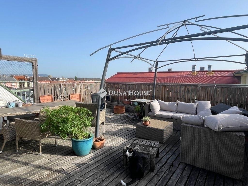 Budapest IX. kerület eladó lakás Budai kilátás, pesti élet, panorámás tetőterasz a város felett! 2000-es években épült hatemeletes társas házban található ez a belső kétszintes, napfényes lakás. Az ingatlan különlegessége a tetőterasznak köszönhető egyedülálló panoráma. A lenyűgöző kilátás mellett egy tágas és világos nappali biztosítja a családi és baráti összejövetelekhez a tökéletes helyszínt. Az amerikai konyhás nappaliból egy kényelmes és dizájnos lépcső vezet a felső szintre, ahol két hálószoba, gardróbbal és fürdővel várja az új tulajdonost. A tetőterasz nem csak pihenésre, vendégek fogadására, de akár kényelmes otthoni munkára is alkamás. Ez a lakás ideális választás azok számára, akik egy modern, tágas otthonra vágynak, amely könnyedén megközelíthető, ugyanakkor egy csendes oázis, ahová a nap végén visszatérhetnek. Ha a kényelmet, a stílust és a központi elhelyezkedést keresi, ez az ingatlan tökéletes Ön számára. A lakás jellegzetessége továbbá a társas házhoz tartozó zárható kert, amely tökéletes választás azoknak, akik értékelik a kültéri magánéletet a város közepén. A lakás tájolása és a szobák elrendezése miatt természetes fény teszi világossá a belső tereket.Ne hagyja ki ezt a rendkívüli lehetőséget! Egy ilyen egyedi lakás ritkán kerül piacra. Várjuk jelentkezését, hogy egyeztessünk egy megtekintési időpontot. Fedezze fel, miért lehet ez az ingatlan a tökéletes választás az Ön és családja számára. Amennyiben nem találta mg az Önnek megfelelő ingatlant, kérem keresse fel a https://luzsi-tatjana.dh.hu oldalt. | |||
