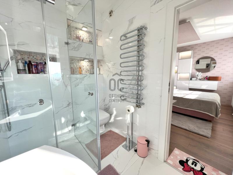 Eladó a IV. kerületben a Metrodom Panoráma Társasházban egy újszerű 8.emeleti 4 szobás, panorámás otthon! Az ingatlan szerepelt a Szép Házak magazin 2022-es számában. LAKÁS: Az ingatlan nettó 84nm alapterületű. Helyiségei: előszoba, nappali-konyha-étkező, 3 hálószoba, 2 fürdőszoba-WC, külön WC. A nappaliból kijuthatunk a 16nm-es teraszra, ahonnan dunai panoráma tárul elénk. Az ingatlan magas minőségű bútorokkal van berendezve. Minden bútor a vételár részét képezi. A lakásban "smart home" rendszer van. Minden nyílászáró elektromos redőnnyel felszerelt. Fűtése házközponti egyedi méréssel. A lakáshoz opcionálisan megvásárolható két teremgarázs hely, melynek darabja 7M Ft. TÁRSASHÁZ: A lakóparkban a lakások mellett üzletek, vendéglátóhelyek és irodák kerültek kialakításra. Az épületek falaira telepített 170 db fa és több ezer kisebb növény az egész lakóparkot egyetlen, hatalmas, 3 dimenziós FÜGGŐLEGES LIGET-té változtatja. A négy épülettömb között elhelyezkedő sétálótér egyúttal kínál lehetőséget a pihenésre, a közösségi életre, illetve több korosztályos, modern játszóterével időtöltést a gyerekeknek. A teret szegélyező üzletek között található élelmiszerbolt, pékség, étterem, cukrászda, kávézó és egyéb szolgáltatások. Közösségi szolgáltatások: portaszolgálat; tágas, elegáns előtér; függőleges liget; korosztályos játszótér; babakocsi-tároló; pihenőpark és árkádos teraszok. KÖRNYÉK: Tömegközlekedés: Buszok: 104,104A,122,147,196,204, Metró: M3-10 perc sétára van (Újpest Központ) Éjszakai járatok: éjszakai M3 metrópótló 950, 950A busz Hívjon bizalommal! Extrák: különnyíló szobák | |||