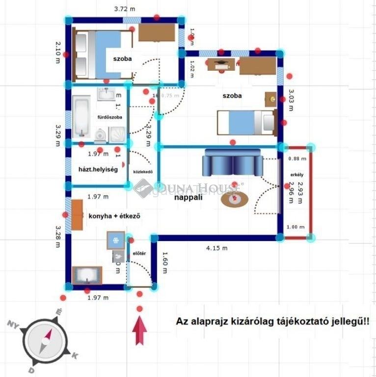 | Tájolás | délkelet | ||