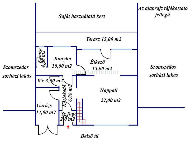 | Tájolás | északnyugat | ||