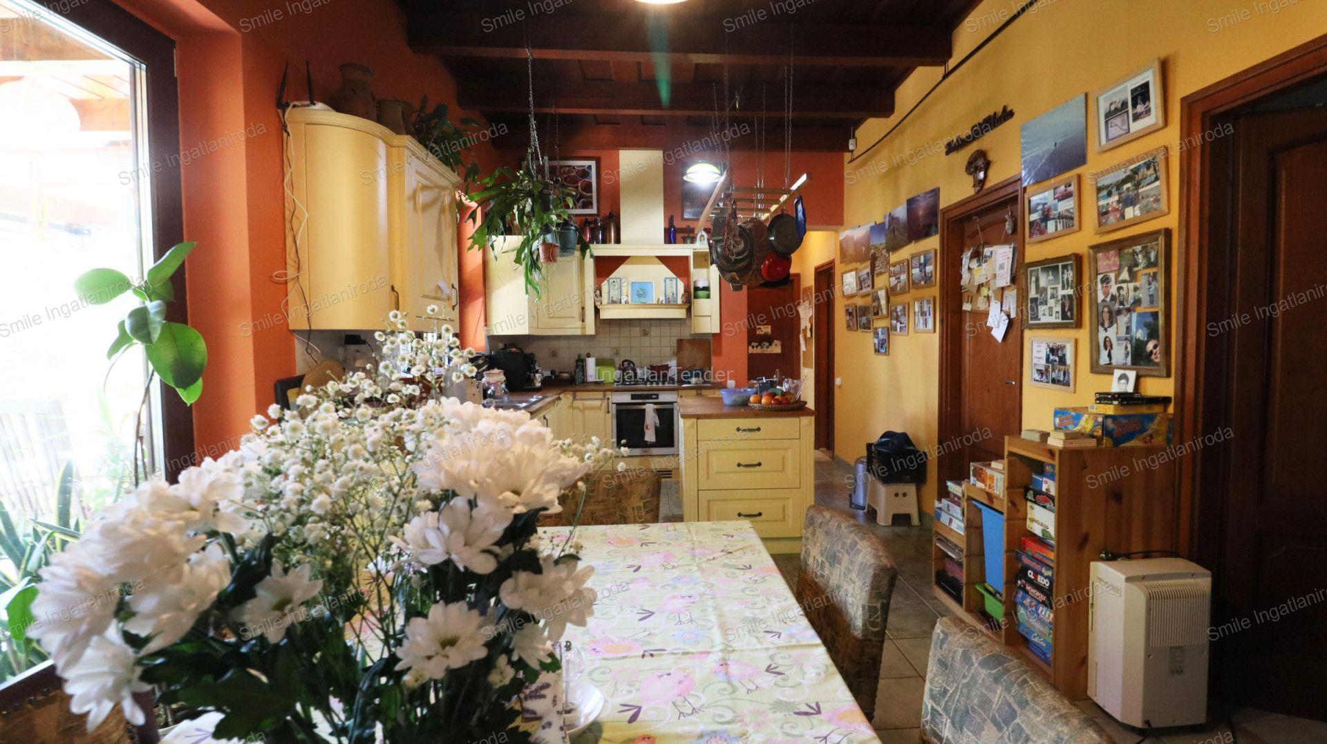 Fedezze fel Nyíregyháza, Nyírszőlős egyik legjobb kertvárosi részén ezt a 2021-ben jelentős műszaki és esztétikai felújításon átesett, földszintes, dupla komfortos családi házat! A tágas terek, a modernizált gépészet, a hatalmas, két utcára nyíló telek és a családias, természetközeli stílus teszi ezt az ingatlant igazán különlegessé – legyen szó nagycsaládos otthonról, generációk együttéléséről vagy akár befektetésről. Főbb jellemzők • Lokáció: Nyíregyháza, Nyírszőlős, Pannónia utca – kertvárosias, csendes, zöldövezeti környezet, NY-elkerülő út közelében. • Telek: 3176 m²-es, parkosított, két utcára (Pannónia és Ezerjó utca) nyíló, megosztható telek. Az Ezerjó utca felől külön építési telek is kialakítható, bevezetett vízzel, utcafronton gázzal és villannyal. • Lakótér: Nettó alapterület 198,84 m² Redukált alapterület 163,60 m2 (lakótér: 128,35 m², garázs: 34,45 m²), jól átgondolt, világos, tágas elrendezés. • Állapot: Jó, folyamatosan karbantartott, 2021-ben jelentős felújításokkal: • Teljes tetőcsere (garanciális cserepekkel) • Új gázkazán és 150 literes, gázzal fűthető melegvíz-tároló • Cserépkályha újrarakása • Garázsban lévő faelgázosító kazán felújítása (2000 literes puffertartállyal) • Terasz új burkolata • Új villanysütő, gáztűzhely, mosogatógép • Teraszajtó és nappali üvegfelületének cseréje (fa helyett műanyag) • Fűtés: Cirko padlófűtéssel és radiátorokkal, alternatív fűtési lehetőségként faelgázosító kazán és cserépkályha. • Komfort: Duplakomfortos, központi porszívó, szigetelt, járható padlás, sok beépített szekrény (marad), igény esetén a bútorzat nagy része is maradhat. • Sport és családi lehetőségek: Gumilapos sportpálya (kosárlabda palánk, kézilabda kapu), homokozó, stabil hintaállvány, 15 m³-es fatároló (kb. 5 m³ fával), két kutyakennel, ligetes, erdészeti fákkal telepített hátsó kert. Stílus és életérzés A ház klasszikus, kertvárosi, rusztikus stílusával, természetes anyaghasználatával, meleg színeivel és otthonos atmoszférájával igazi családbarát otthon. A nagy ablakoknak és a fedett terasznak köszönhetően a természet közelsége minden nap élvezhető. A modernizált gépészet, a felújított burkolatok és a korszerű nyílászárók a mai elvárásoknak is megfelelnek, miközben a hagyományos értékek és a családias hangulat is megmarad. Kiemelt előnyök • Két utcára nyíló, megosztható telek – befektetési lehetőség! • Alternatív fűtési módok, korszerű gépészet, cserépkályha, faelgázosító kazán • Központi porszívó, sok beépített szekrény, igényes burkolatok • Sport- és játszótér, ligetes kert, kutyakennel – tökéletes családoknak, állatbarátoknak • Részben bútorozottan is eladó Most Önön a sor! Ha egy valóban egyedi, tágas, felújított, természetközeli otthont keres Nyíregyháza kertvárosában, amely egyszerre nyújt modern kényelmet, időtálló értéket és családias hangulatot, ne hagyja ki ezt a lehetőséget! Jöjjön el, nézze meg, és találja meg új otthonát ebben a stílusos, minden igényt kielégítő házban! Keressen bizalommal a részletekért és a megtekintésért! | |||||||||||||||||||||||||||||||||||||||||||||||||||||||||||||||||||||||