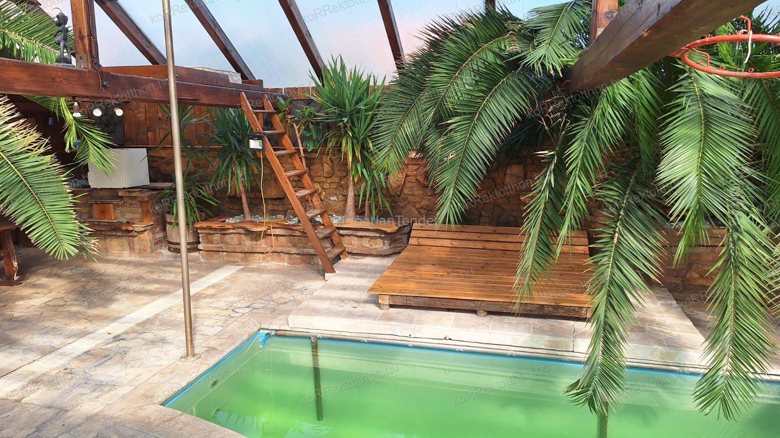 Eladó családi ház Jászberény szívében! Megvételre kínálok egy 3 hálószobából és nappaliból álló fedett medencés ingatlant ahol megoldható két különlakrész kialakítása is. A ház sajátossága a képeken is szereplő FINN SZAUNA ami a tágas és kényelmes fürdőszobából nyílik. Innen vezet az út hátra a ház gyöngyszeméhez, amely nem más, mint a fedett tengerpartot idéző pálmafákkal díszített medence. Év/napszaktól függetlenül igénybe vehető hiszen a polikarbonát tetőnek köszönhetően a környezeti viszontagságok nem jelentenek befolyásoló tényezőt. A medencés résznél külön WC és zuhanyzó lett kialakítva a teljes komfort érdekében. Ezen felül található egy kemence a medence mellett, illetve egy kerti fedett sütögető, amely helyszínt jelenthet bármilyen összejövetelnek, családi rendezvénynek. A ház sajátossága a többféle fűtés rendszer, gáz és elektromos formában. A melegvíz ellátást gáz bojler biztosítja. Napkollektor hálózat 90%-ban kiépítve ÉMÁSZ engedéllyel, igény és felár esetén a napkollektorok felszerelésre kerülnek. Az ingatlan kamera rendszerrel és két nagyteljesítményű klímával rendelkezik . A házhoz tartozik két férőhelyes autó beálló amelyhez az elektromos kapun át vezet az út. Elhelyezkedés szempontjából keresve sem találhatnánk jobb helyet Jászberényben, hiszen a mindennapi élethez szükséges kiszolgáló egységek (iskola, óvoda, bolt, gyógyszertár stb…), akár gyalog is néhány perc alatt elérhetőek. A belvárosi nyüzsgés miatt nem kell aggódni, hiszen egy csendes, kis forgalmú utcában helyezkedik el. Amennyiben hirdetésem felkeltette érdeklődését, forduljon hozzám bizalommal! | |||||||||||||||||||||||||||||||||||||||||||||||||||||||||||||||||||||||
