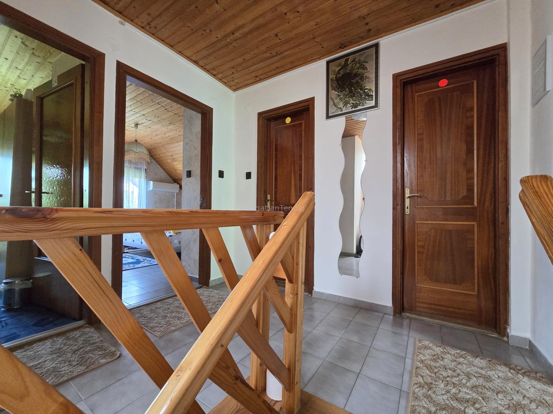 Kehidakustány csendes, zöldövezeti részén eladó egy különleges hangulatú, gondosan karbantartott ingatlan, amely tökéletes lehet nagycsaládos otthonnak vagy akár jól jövedelmező apartmanháznak is. A ház melegséget és harmóniát áraszt – egy hely, ahol igazán otthon lehet lenni. Különleges nappali – természetközeli otthonérzet Az 50 nm-es, faházhatású nappali a ház szíve: tágas, világos, nagy belmagasságú tér, ami a természetes anyagokkal és a beáradó fénnyel igazi békés menedék. A fatüzelésű kályha az előtérben nemcsak hangulatos, de praktikus kiegészítő is a hűvösebb napokra. Tágas élettér – családoknak, több generációnak is tökéletes A 44 nm-es fedett terasz tökéletes reggeli kávézáshoz vagy esti borozáshoz. Jól bejáratott apartmanház – biztos bevételi forrás A különálló 62 nm-es apartmanház és a ház emeletén lévő 3 apartman 9.5/10-es vendégértékeléssel rendelkezik, visszatérő vendégek egész évben. Teljesen felszerelt, azonnal üzemeltethető. Álomszép kert – hely a pihenésre és az ünnepekre A 2500 nm-es, széles telek ősfás, virágos, gondozott, körbekerített. Grillezéshez, gyerekzsúrokhoz, baráti összejövetelekhez kiváló – egy darab természet a saját otthonodban Műszaki jellemzők – stabil alap, korszerű kényelmi extrák • Építés éve: 1989 – B30-as tégla, betonfödém, cseréptető • 206 nm főépület + 62 nm apartman • 5 éve felújítva: nappali, tetőablakok részleges villanycsere 7 db klíma modern fűtés (2 gázkazán) külső festés, elektromos kapu apartmanok tetőfelújítása Kehidakustány előnyei – csend, gyógyvíz, élmény Nyugodt, barátságos környezet a Zalai-dombság szívében Kehida Termálfürdő pár perc Balaton 20 perc, Hévíz, Keszthely közelsége Miért különleges ez a ház? Mert melegséget áraszt. Mert a nappali nemcsak szép, hanem történetet mesél – faburkolat, fény, csend és tér mind azt mondják: "Itt jó élni. Itt jó megállni. Itt jó lenni." Irányár: 114.900.000 Ft (= 428.731 Ft/nm – bútorozottan, kisgépekkel, vendéglátásra felszerelve!) | ||||||||||||||||||||||||||||||||||||||||||||||||||||||||||||||||||||||||